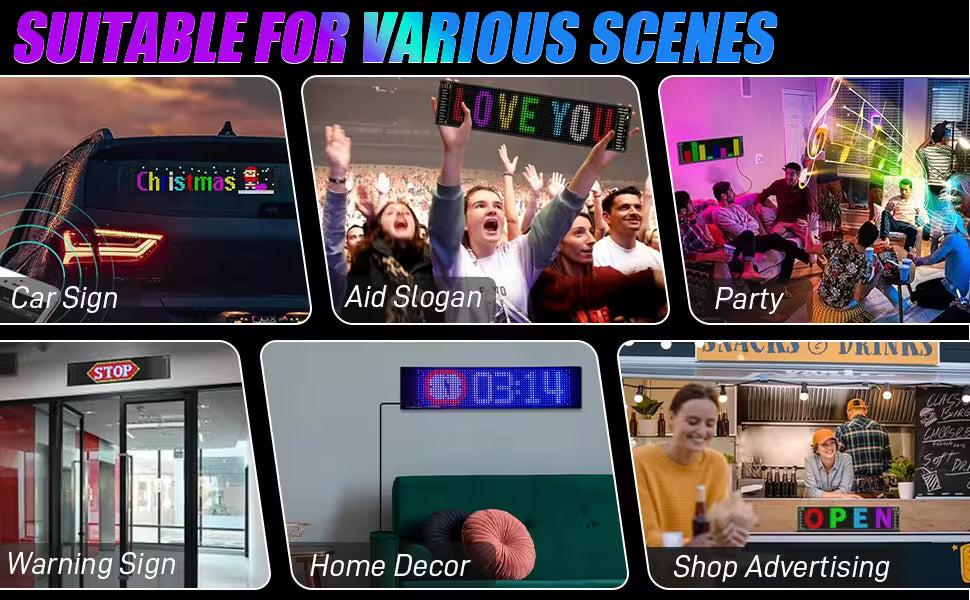 The versatility of the Miootly RGB LED Matrix is unmatched, making it suitable for a wide range of applications. Perfect for retail shops, hotels, bars, restaurants, trade shows, and events, this LED matrix can transform any environment with dynamic, eye-catching displays. Whether you're promoting a product, creating a festive atmosphere, or adding an artistic touch to a space, this LED panel provides endless possibilities for creativity.